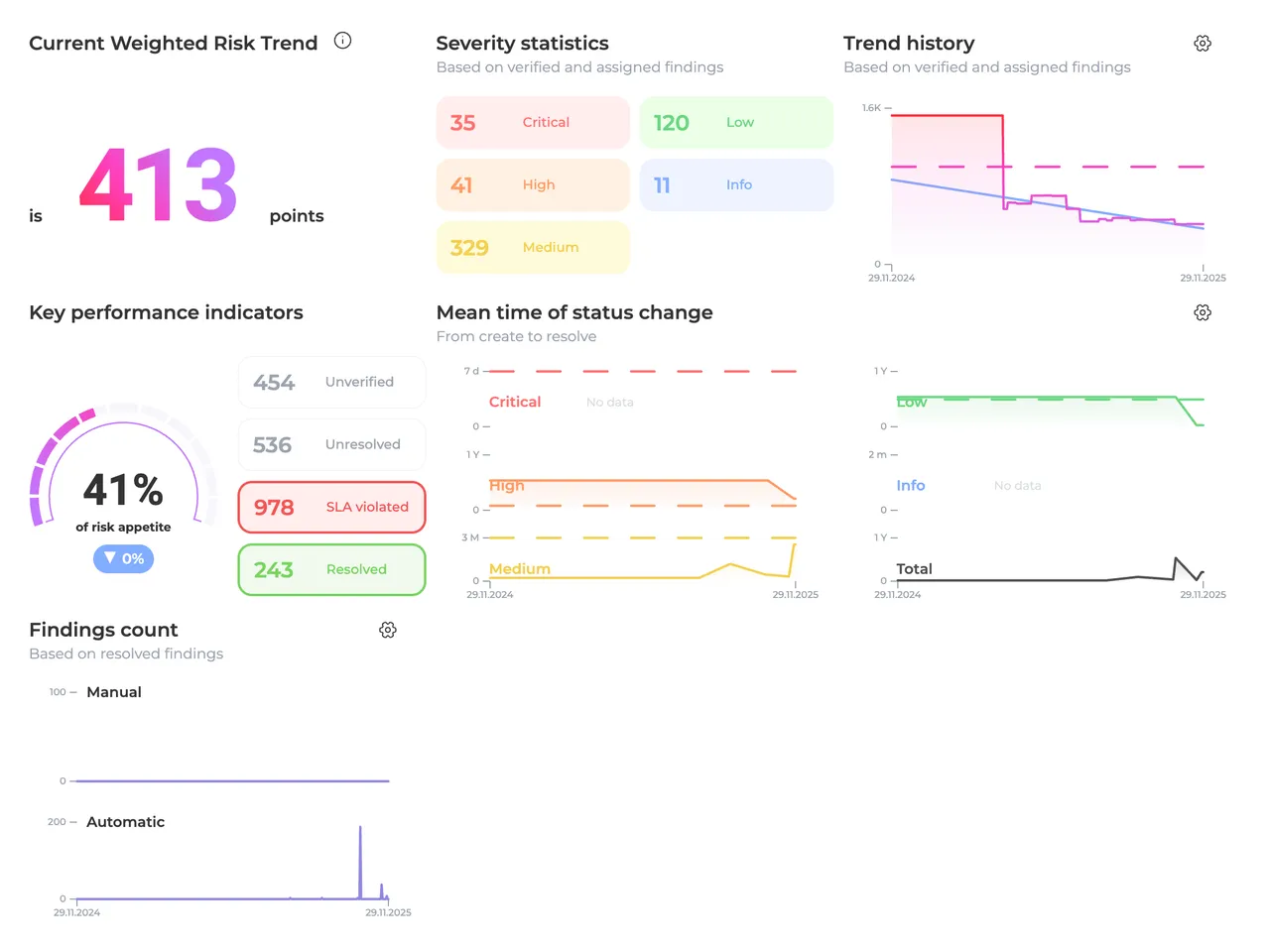 ✔️ Identify and analyse risk of security defects in every product with informative Dashboard and Risk Assessment Overview.