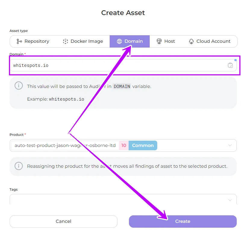 - Repository SSH URL: enter the address of your repository in a specific format, for example: git@gitlab.com:whitespots-public/appsec-portal.git