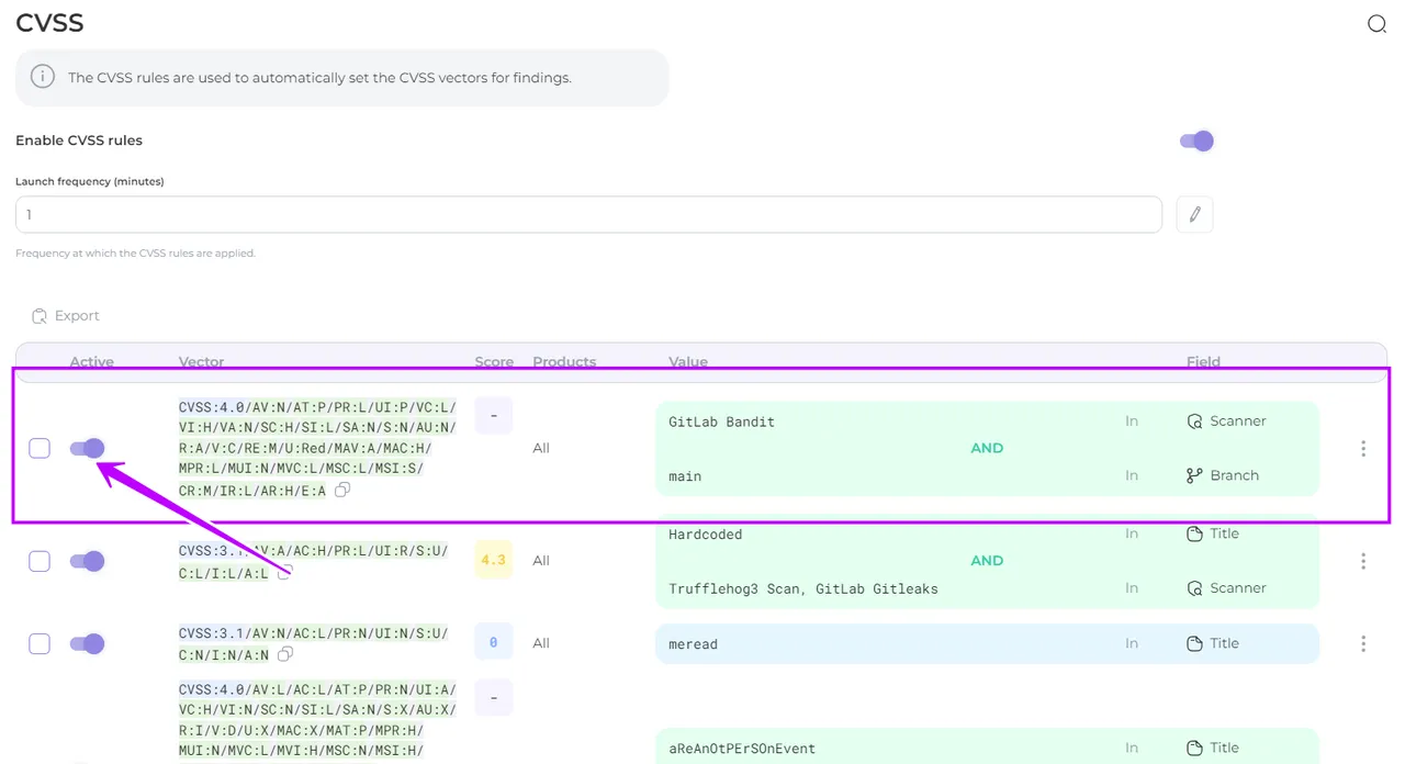 - The rule will be created and the CVSS value will be automatically assigned to the corresponding findings when processing the scan results.