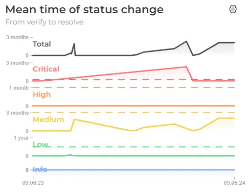 By monitoring the Status change mean time graph in relation to the SLA requirements, you can effectively manage and prioritize your remediation efforts, ensuring that critical vulnerabilities are promptly addressed and mitigated according to the established timelines.
