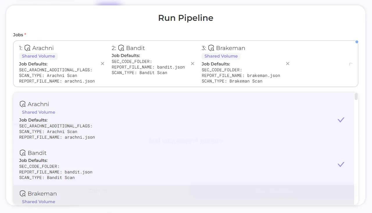 Click on the Jobs field and create a sequence of jobs (scanners) by selecting the required jobs from the drop-down list