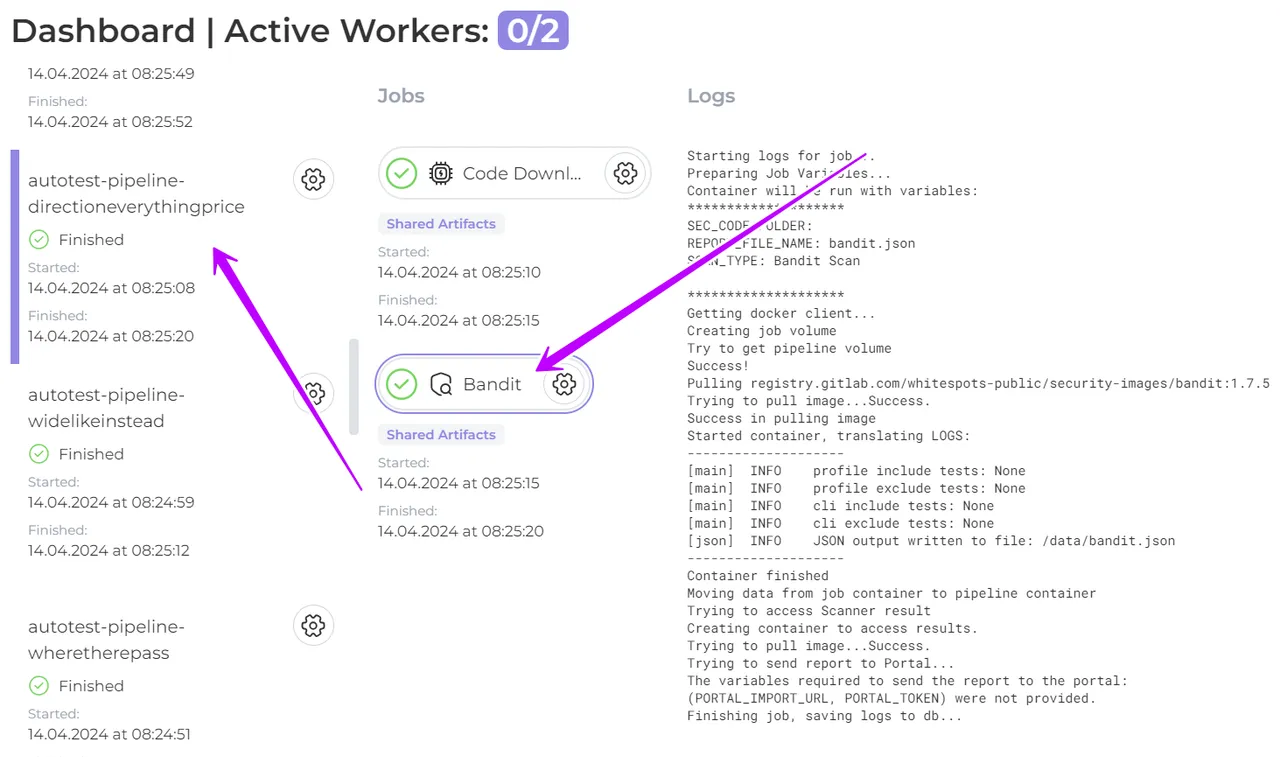 At the location specified by the environment variable (PORTAL_URL), retrieve reports from each scanner in your pipeline