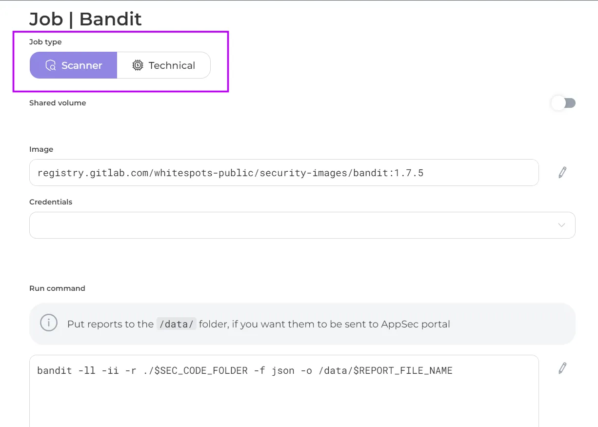 - Shared Volume: in activated position passes its scan results to the next jobs in the sequence
