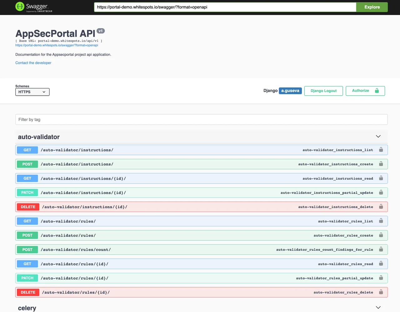 To access the AppSec Portal API endpoints, navigate to the following URL in your web browser:
