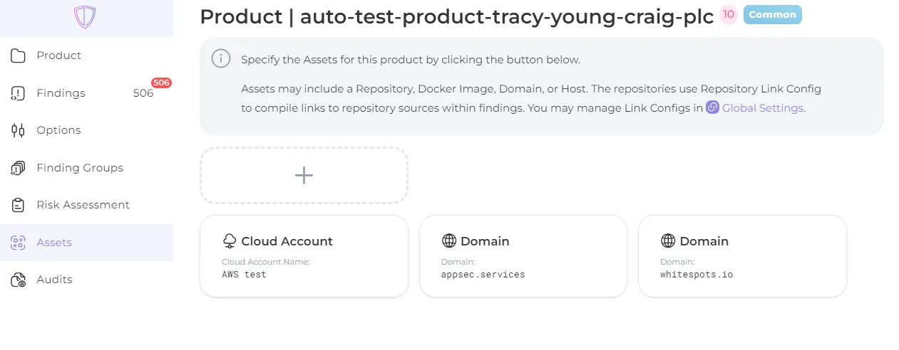 If the product has already been created, add its Asset data. To do this, select the product on the Product page