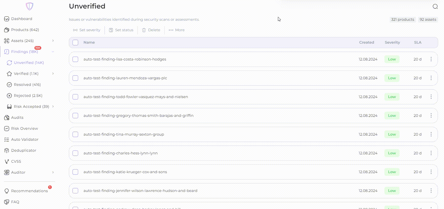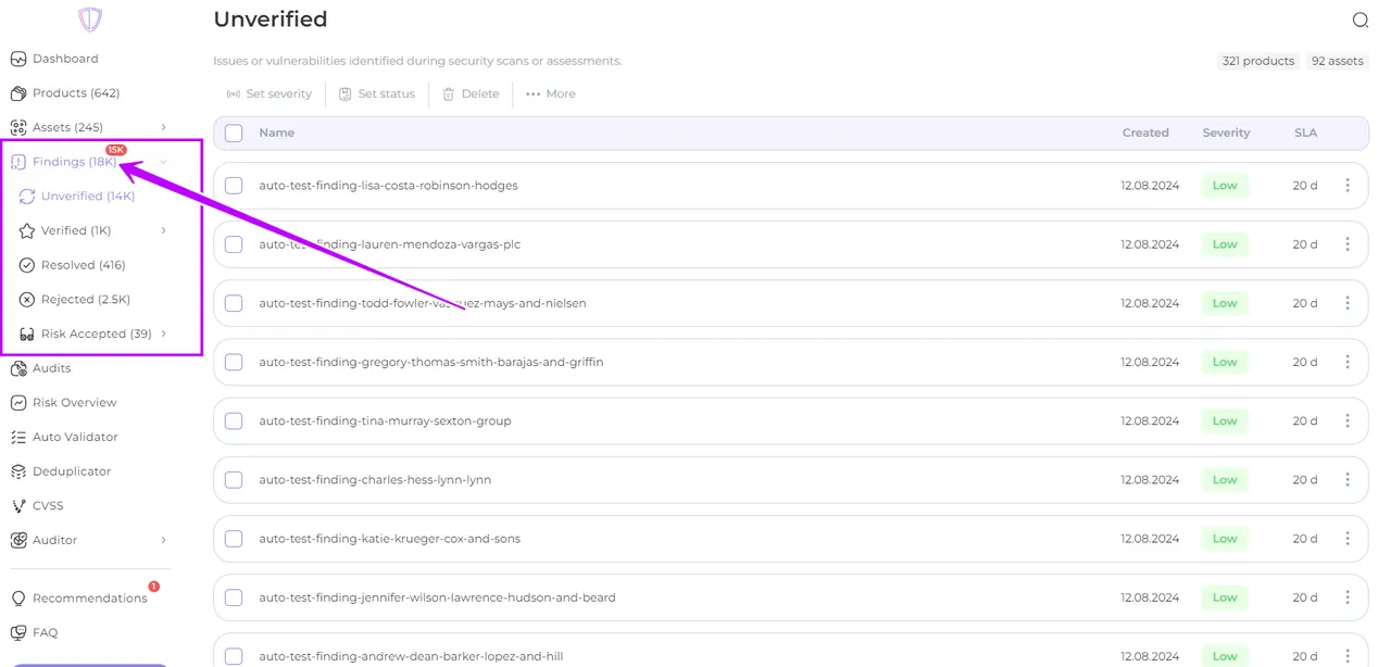 Every finding can be viewed, edited and verified on the same page one by one: