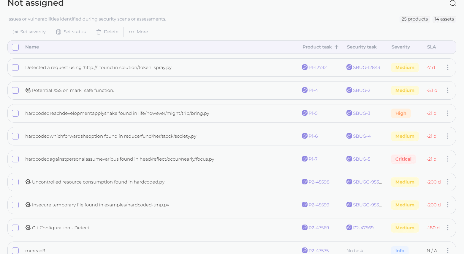 If the findings are assigned to a group, a special icon appears to the left of the finding name -