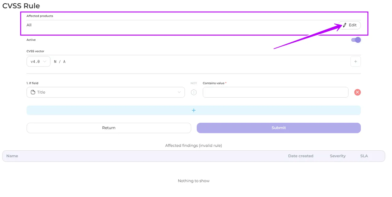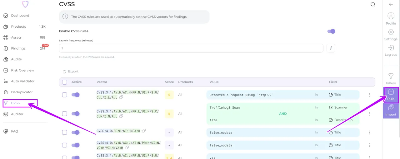 - The rule will be created and the CVSS value will be automatically assigned to the corresponding findings when processing the scan results.