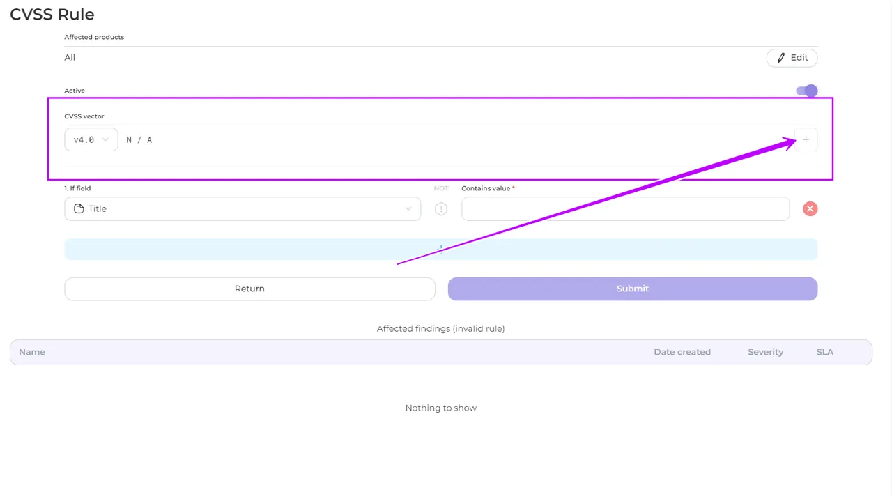 - Navigate to the CVSS section and click on the Create Rule button