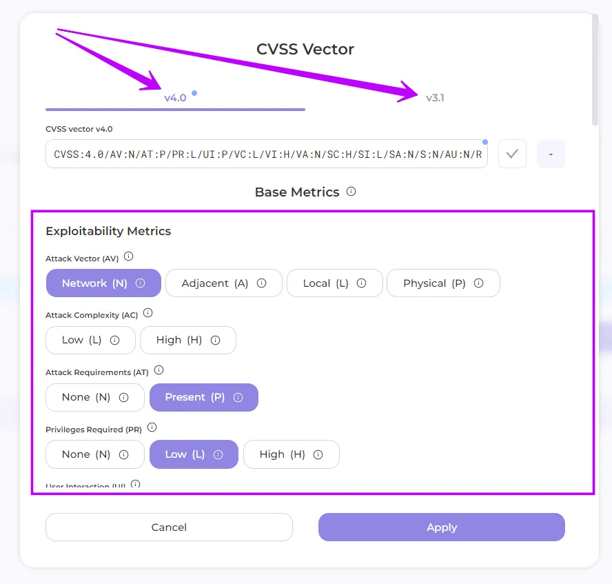 - Add the CVSS vector value