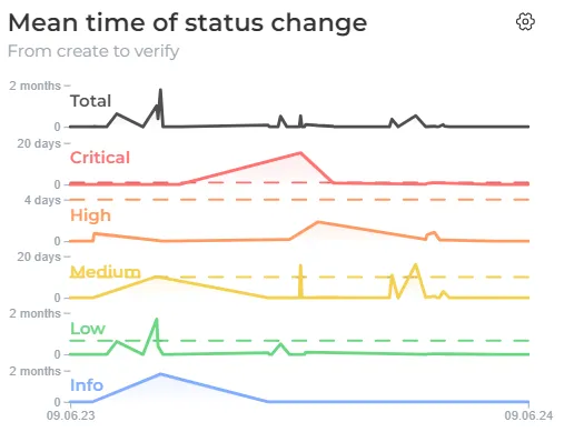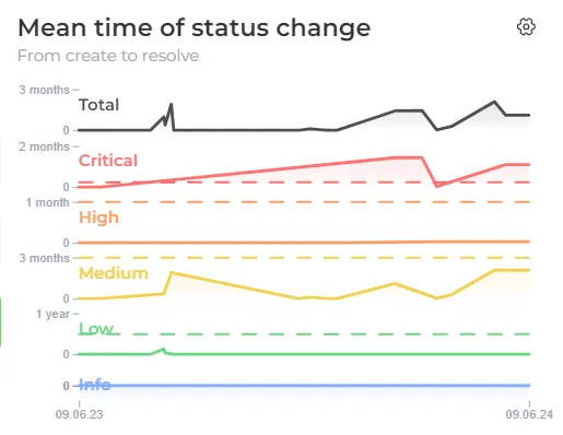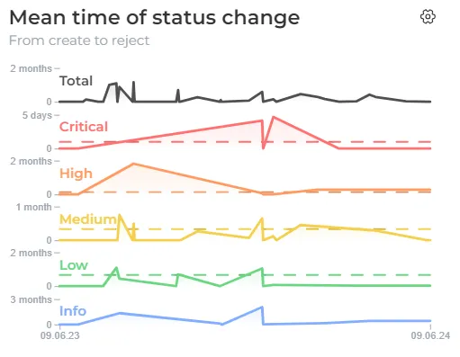 By monitoring the Status change mean time graph in relation to the SLA requirements, you can effectively manage and prioritize your remediation efforts, ensuring that critical vulnerabilities are promptly addressed and mitigated according to the established timelines.