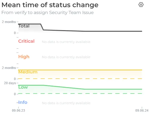 Mean Time to Security Task Assignment (MTTAs) measures the average time it takes for a validated finding to be assigned to a developer (assignee) in the Jira security space from the time it is validated. It helps to track the speed at which results are processed after validation and the initiation of the fixing process.