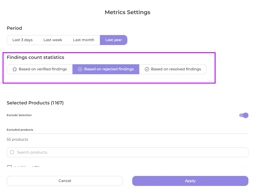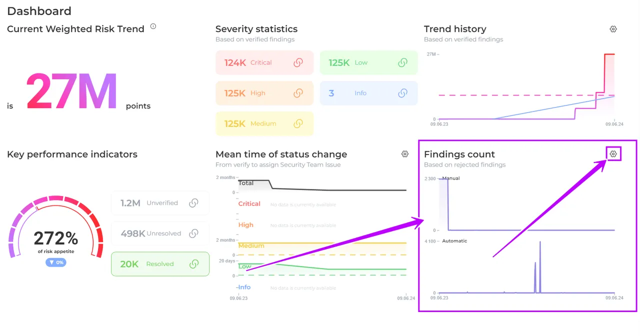 Customise the view of the metric view using the Findings Count Statistics section of the Metrics Settings.