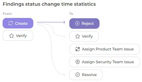 Mean Time to Rejection (MTR) measures the average time it takes for a finding to be rejected after creation. It provides insights into the speed of handling findings that are determined to be false positives.