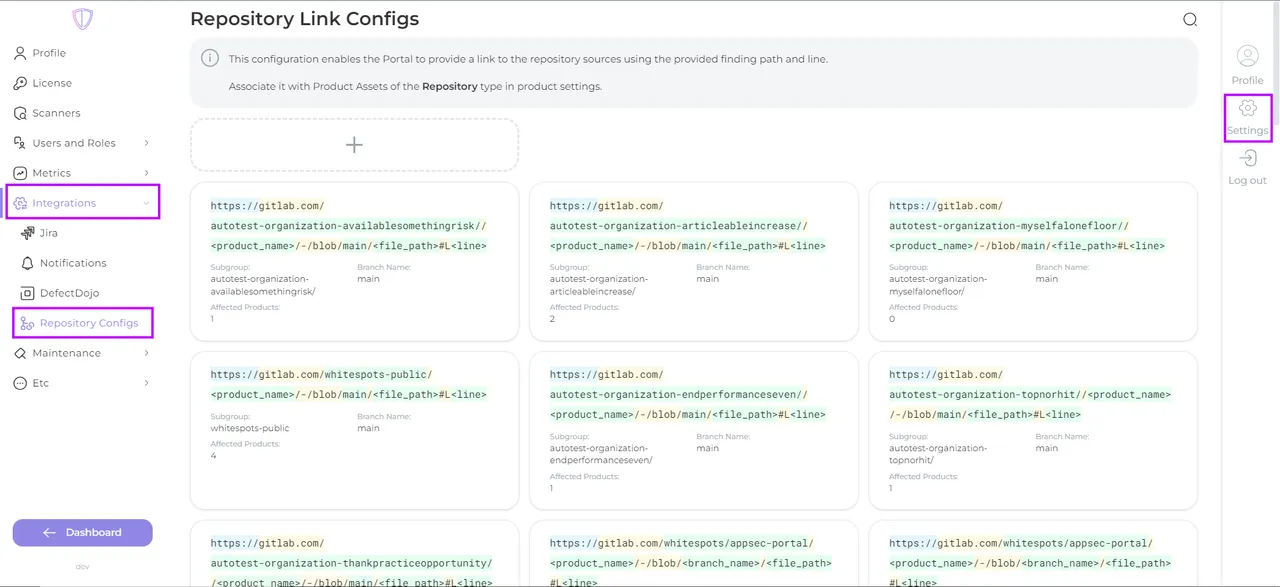 This configuration enables the Portal to provide a link to the repository sources using the provided finding path and line. Associate it with Product Assets of the Repository type in product settings.