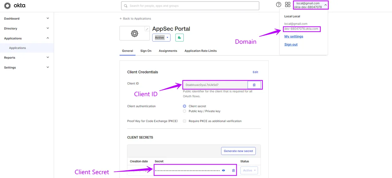 These settings will allow you to use your Okta provider to log in to the AppSec portal