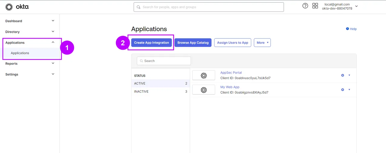 The following steps describe the state of Okta at the time of creating this instruction. The Okta interface may change, so for the most up-to-date information, refer to the official source