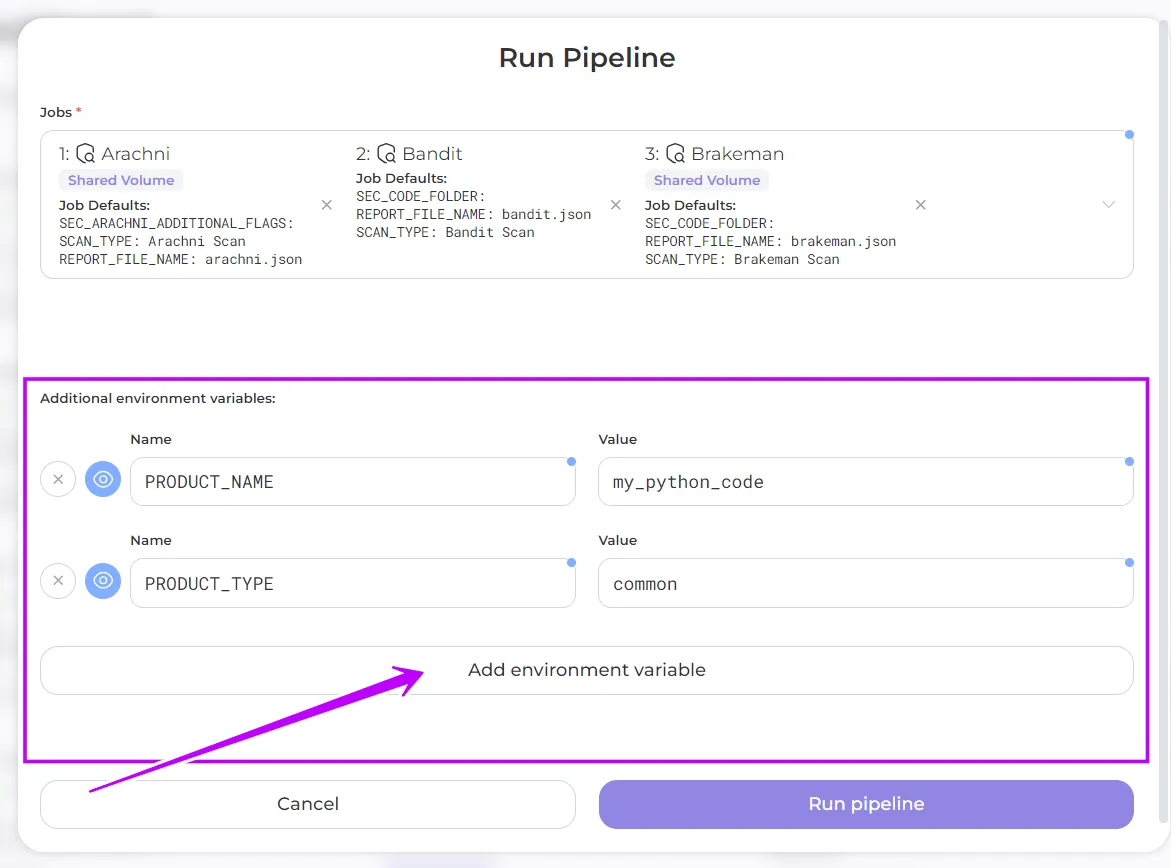 At the location specified by the environment variable (PORTAL_URL), retrieve reports from each scanner in your pipeline