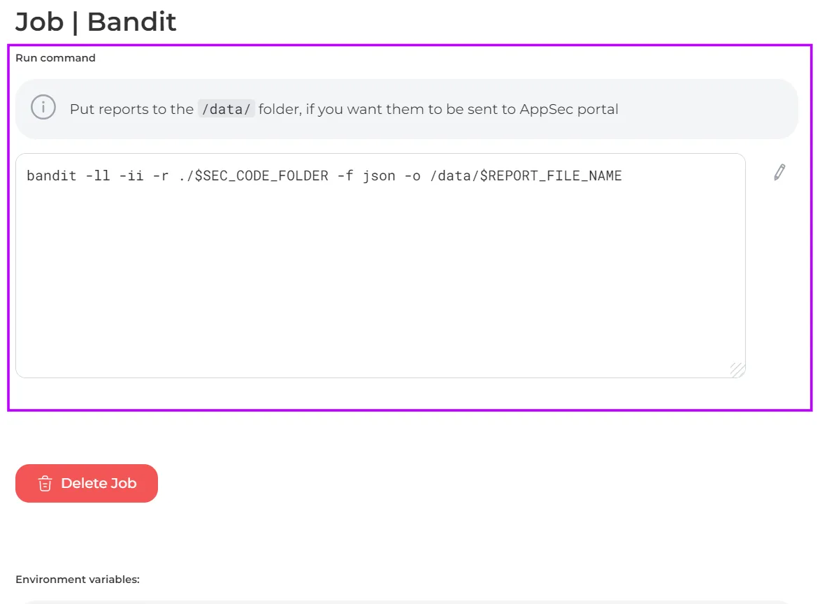 If you are using your own command, you should specify the /data/ directory to save the report in, so that it can be sent to the AppSec Portal.
