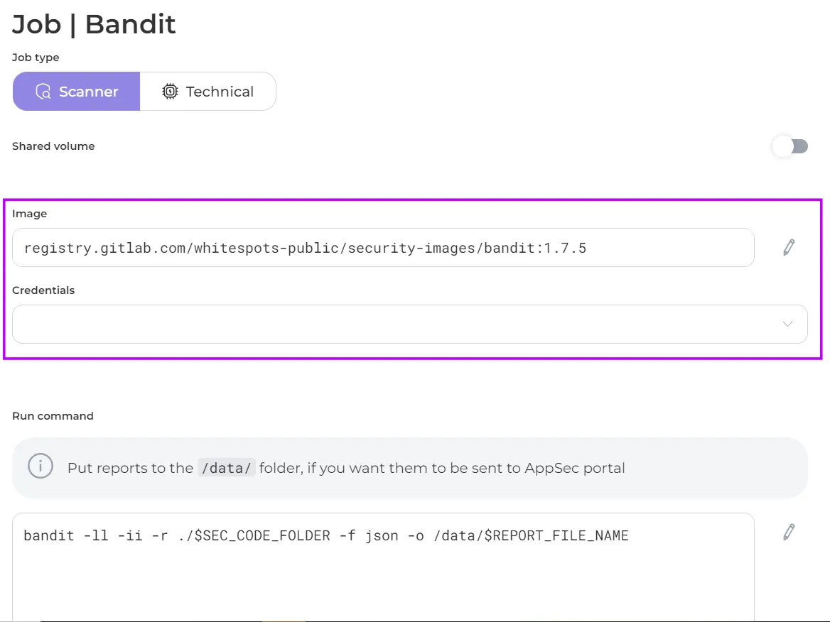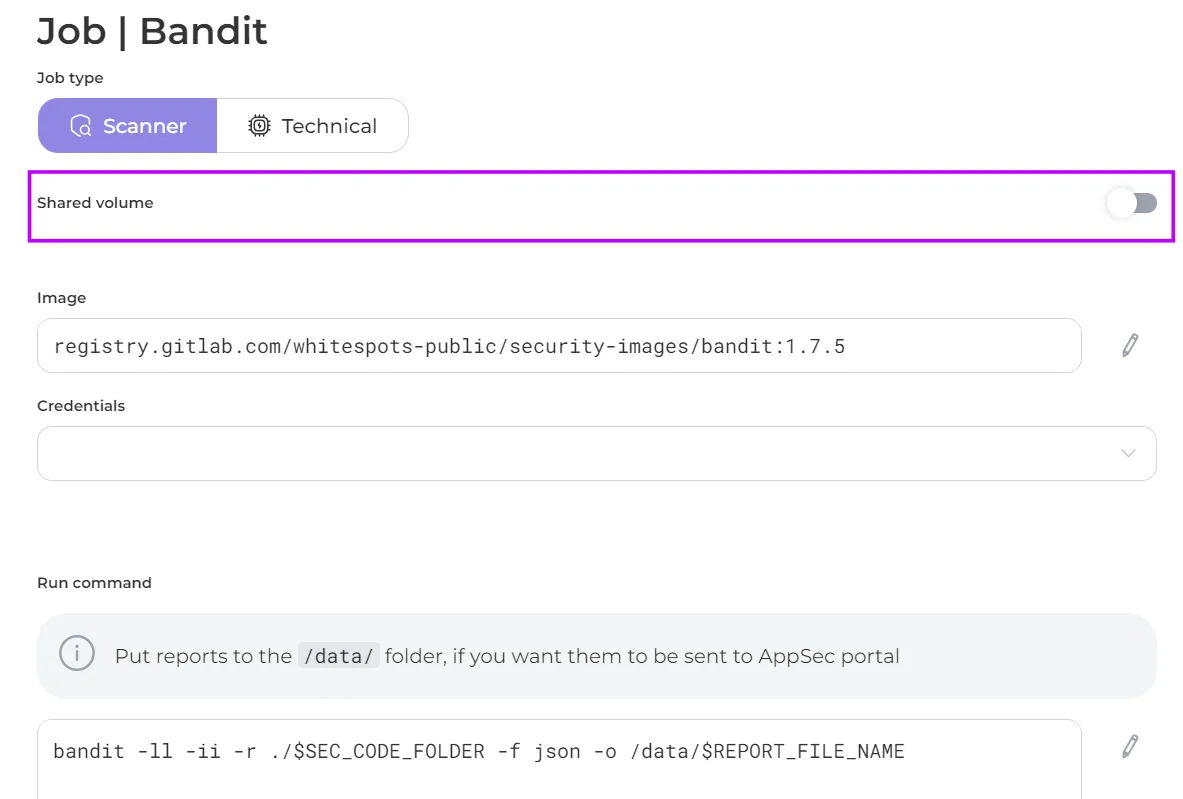 - Shared Volume: in activated position passes its scan results to the next jobs in the sequence